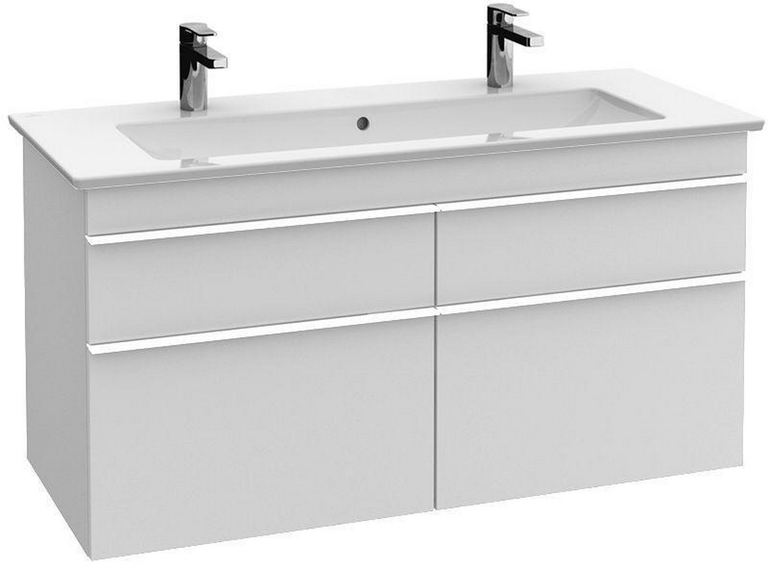 Тумба Villeroy & Boch Venticello Тумба 1153хh590х502мм, д/рак 1200мм, (4 выдв.отдел., 4 контейн.д/акс, 2+4 стекл.разделит,креп.в комп.),(ручк.хр.цв.DH белый глянц),Venticello ZZ