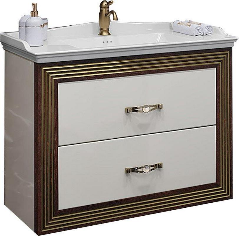 Тумба напольная Оникс 100, 1030*855*450 мм, цвет белый/золотая патина, БЕЗ рак. n126396 Кападокия 100 (ст рак.Прима 1000)