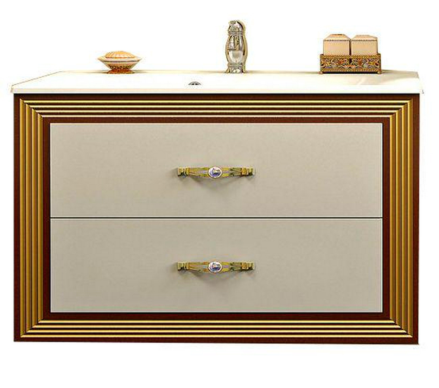 Тумба Opadiris Карат Тумба подвесная Карат 100, 1000*595*450 мм, цвет слоновая кость/золотая патина, БЕЗ раковины Прима 1000, крепеж в комплекте XX
