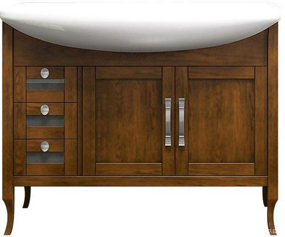 Тумба 97х54,2хh81см, 3 расп.двери, петли Blum, 2 выдв.ящика, раковина 105см, 1 отв.д/смес.в компл.(дерево бук, цв.noce, ручки Riflesso цв.бронза в ком