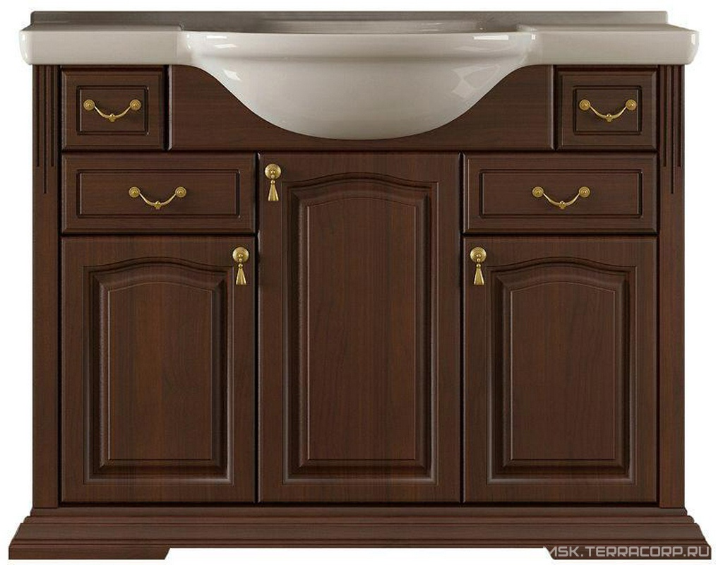 Тумба 97х54,2хh81см, 3 расп.двери, петли Blum, 2 выдв.ящика, раковина 105см, 1 отв.д/смес.в компл.(дерево бук, цв.noce, ручки Riflesso цв.бронза в ком