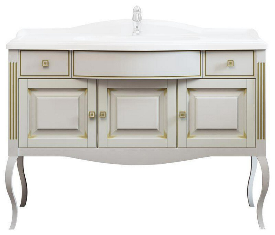 Тумба Opadiris Лаура Тумба напольная Лаура 120, 1200x940x540 мм, БЕЗ раковины Лаура 120, цвет белый с золотой патин.ZZ