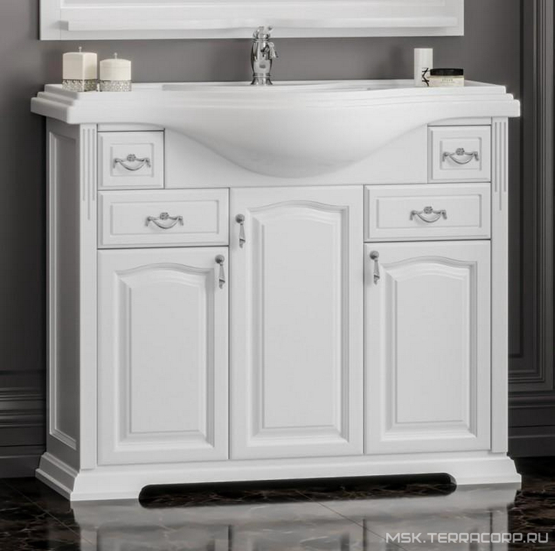 Тумба напольная Оникс 100, 1030*855*450 мм, цвет белый/серебро патина, БЕЗ рак. n126396 Кападокия 100 (ст рак.Прима 1000)