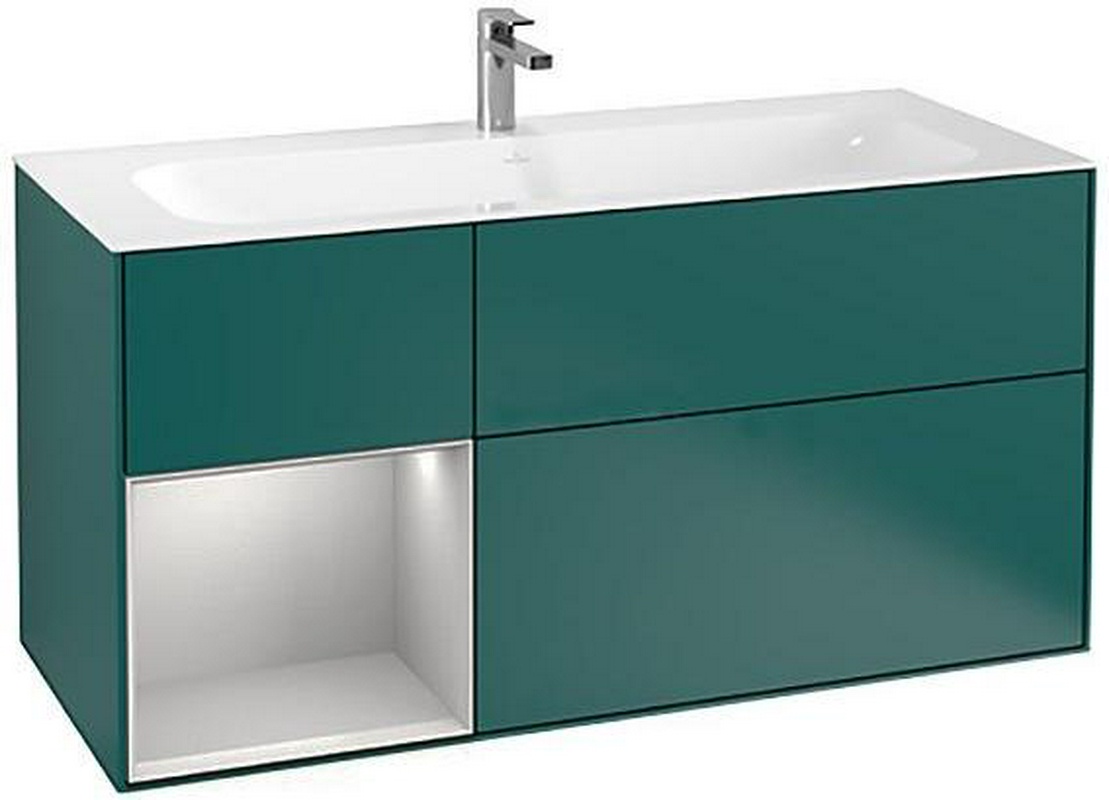 Тумба Villeroy & Boch Finion Тумба 1196хh591х498мм,д/р1200мм,(3 выд.отд,1 конт.д/акс,подсвет),(Shelf element цв.GJ Light Grey Matt Lacguer, фасад и корп.GS Cedar Matt Lac)FinionZZ