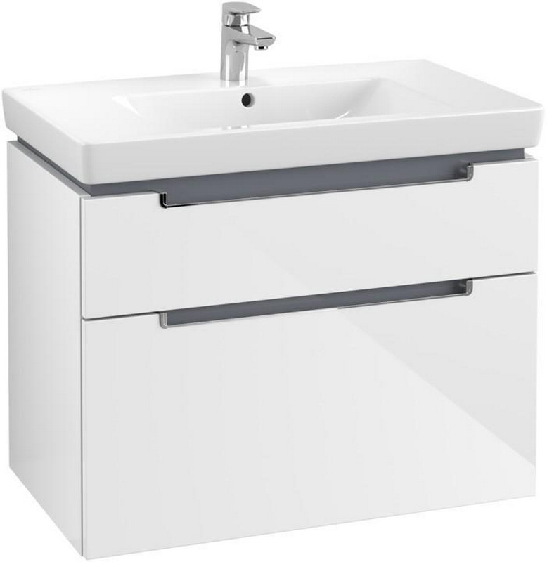 Тумба Villeroy & Boch Subway 2.0 Тумба 787хh590х449мм, для раковины 7175 80/81, 2 выдвижн. отдел., крепеж в компл., ручки цв.хром глянец, (цв. DH Glossy White), Subway 2.0 ZZ