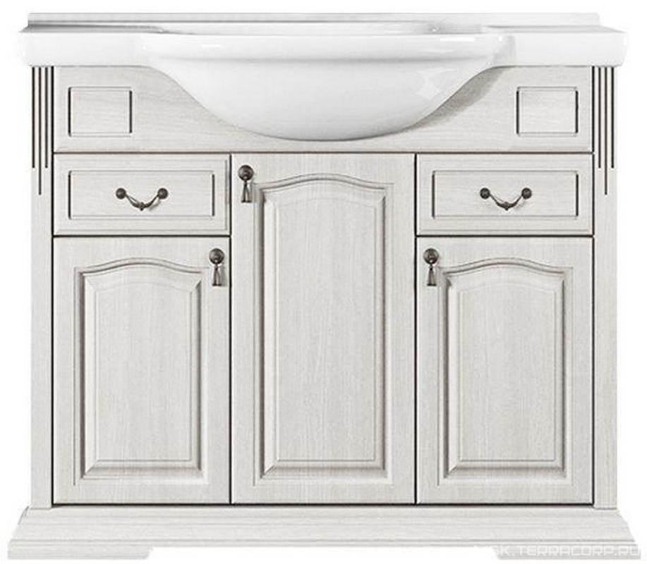 Тумба 97х54,2хh81см, 3 расп.двери, петли Blum, 1 выдв.ящик, раковина 105см, 1 отв.д/смес.в компл.(дерево бук, цв.grigio, ручки Riflesso цв.бронза в ко