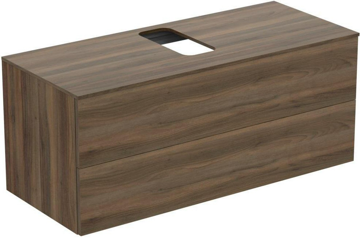 Тумба Ideal Standard Adapto Тумба подвесная 1200х500хh502мм, 2 нажимн.ящика, со столешн. и вырезом д/рак,крепёж в компл,(цв.темное дерево-грец.орех), Adapto ZZ