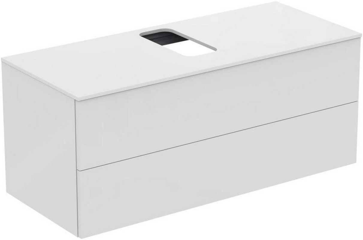 Тумба Ideal Standard Adapto Тумба подвесная 1200х500хh502мм, 2 нажимн.ящика, со столешн. и вырезом д/рак,крепёж в компл,(цв.белый лак глянец), Adapto ZZ