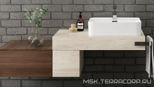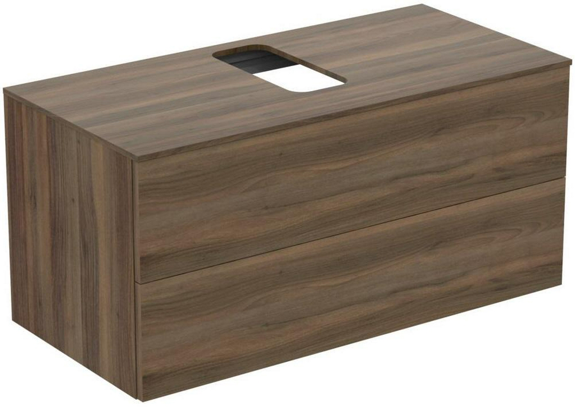 Тумба Ideal Standard Adapto Тумба подвесная 1000х500хh502мм, 2 нажимн.ящика, со столешн. и вырезом д/рак,крепёж в компл,(цв.темное дерево-грец.орех), Adapto ZZ