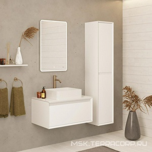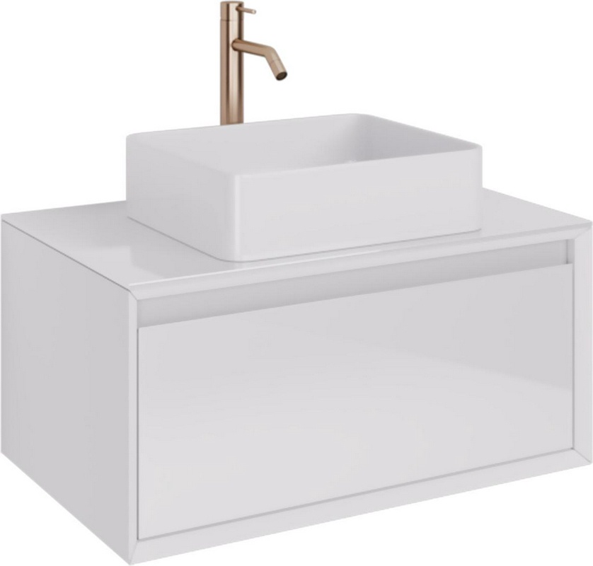 Тумба Dreja Insight Тумба подвесная "INSIGHT"-80, 1выдвижн.ящик, стеклянная столешница в компл.,БЕЗ накладной раковины арт.641945, цв.белый KL