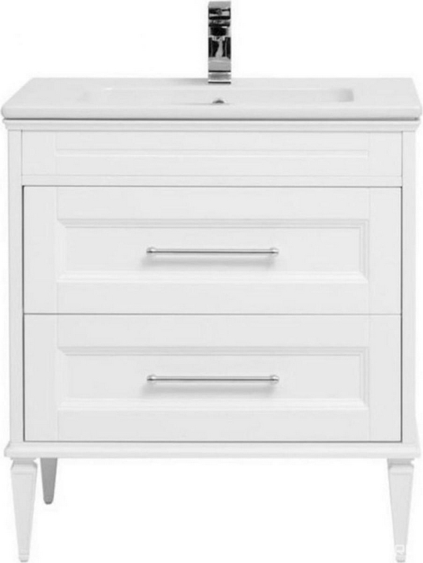 Тумба Aquanet Бостон Тумба напольная "Бостон" - 80 см, цвет белый, 2 выдвижн. ящика, БЕЗ раковины "Эйфория" и комплекта ножек ZZ