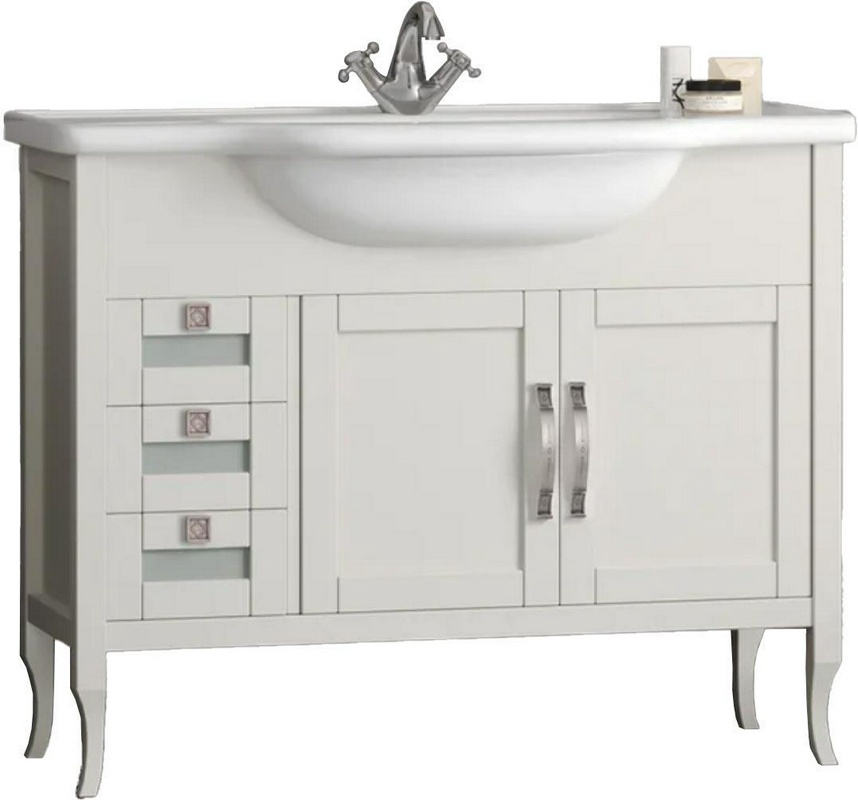 Тумба напольная Оникс 100, 1030*855*450 мм, цвет белый/серебро патина, БЕЗ рак. n126396 Кападокия 100 (ст рак.Прима 1000)