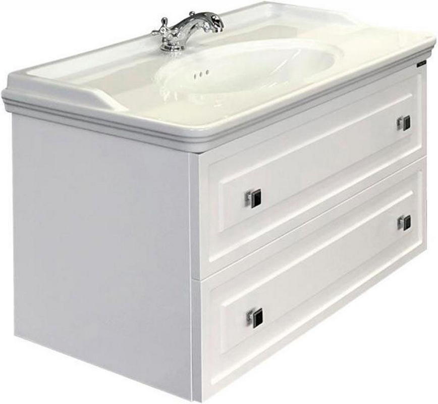 Тумба напольная/подвесная "Бостон" - 100 см, цвет белый, 2 выдвижн. ящика, БЕЗ раковины и комплекта ножек