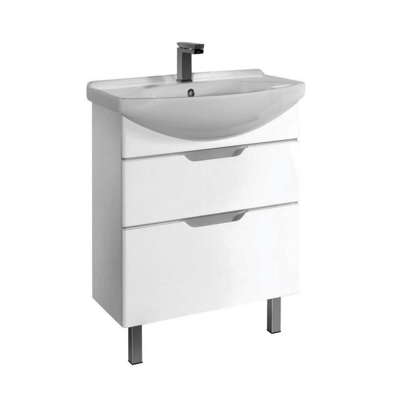 Тумба Dreja Laguna Тумба LAGUNA PLUS, 65 см, подвесная/напольная, 2 ящика, с опорами, БЕЗ раковины, цв. белый глянец, ZZ