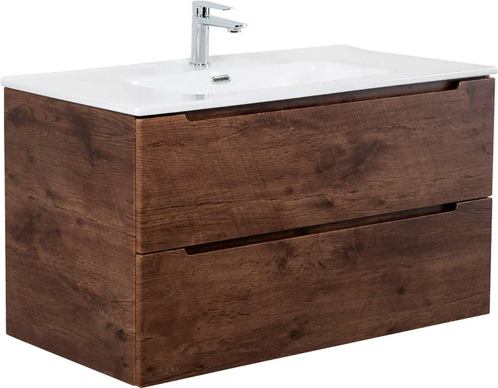 База под раковину подвесная с двумя выкатными ящиками, 1010х460хh515мм, без раковины, (цв.Rovere Tabacco), Kraft