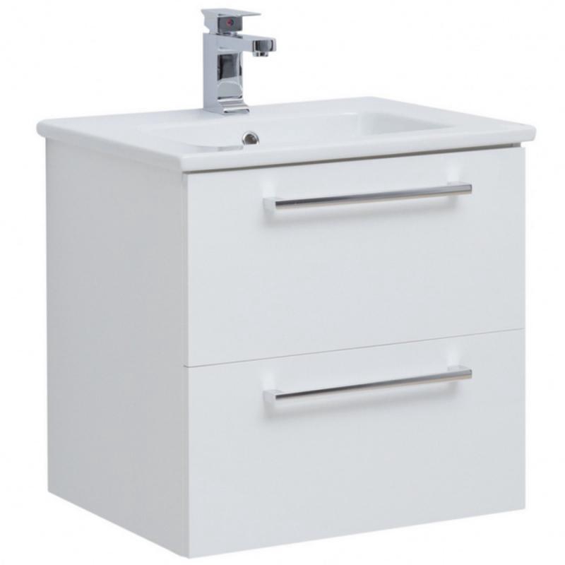 Тумба подвесная под раковину Бруклин 60 белый, 495х436 мм, БЕЗ раковины Sanovit (198206), 2 выдвижный ящика, цв. белый