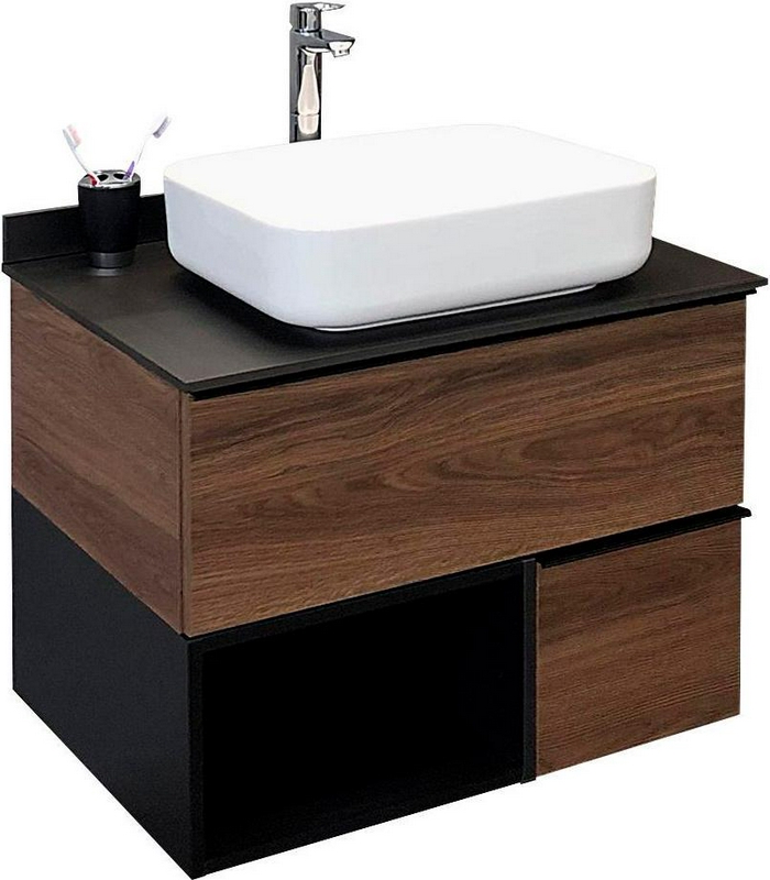 Тумба Comforty Штутгарт Тумба подвесная "Штутгарт-75", дуб тёмно-корич. БЕЗ раковины (COMFORTY T-Y9378), БЕЗ СТОЛЕШНИЦЫ XX