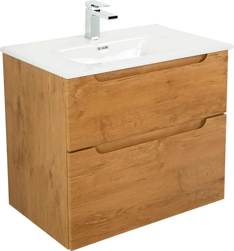 Тумба подвесная "Nova Lite" 75 см, цвет дуб рошелье, 2 выдвижн. ящик, БЕЗ раковины "Латина" ZZ