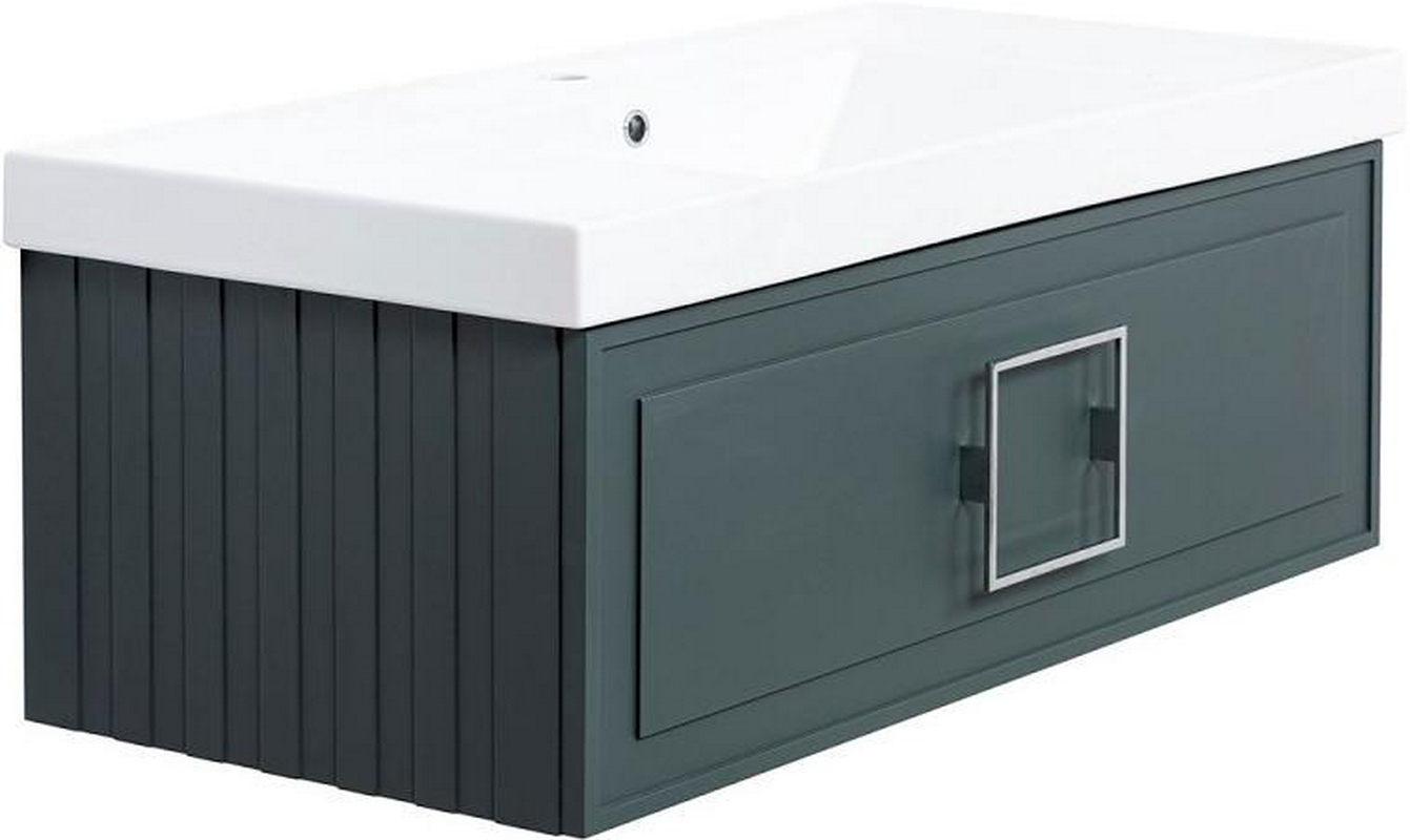 Тумба под раковину, с 1 выкатным ящиком, 976x469хh350мм, без раковины/столешницы, БЕЗ РУЧКИ, (цв.серый матовый), ZZ La Fenice Cubo FNC-01-CUB-G-100
