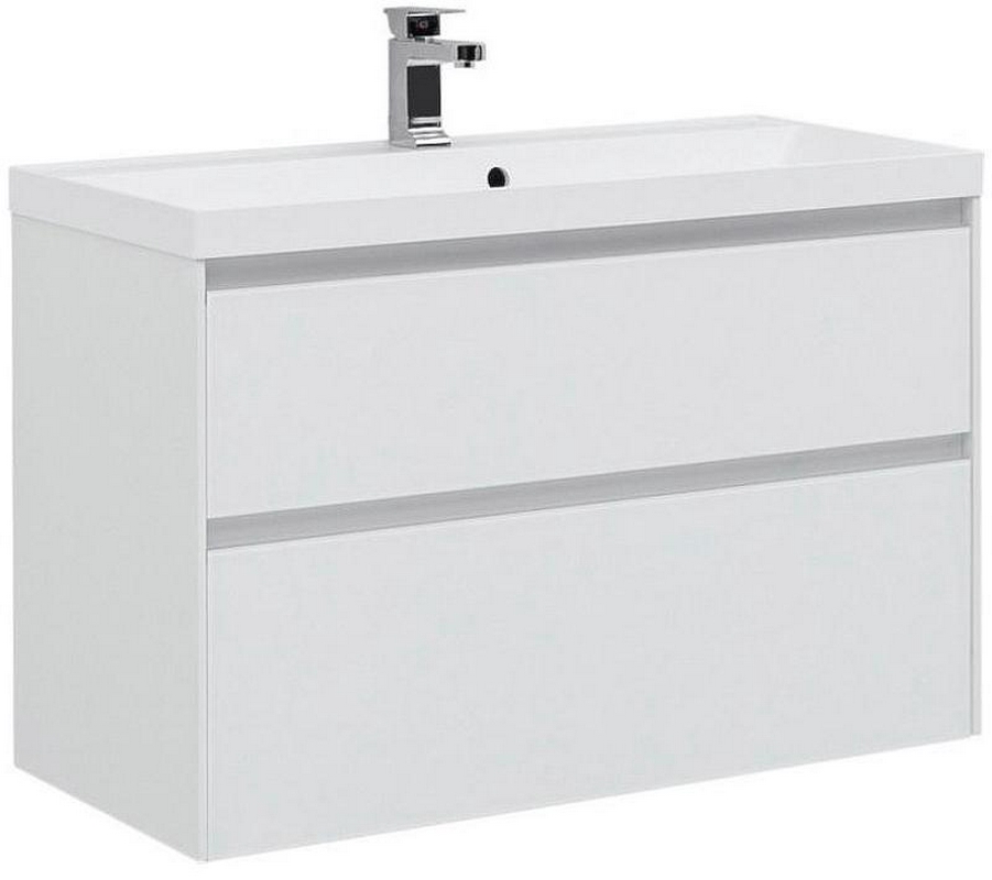 Тумба Aquanet Гласс Тумба подвесная, 100 см с 2 ящиками, без раковины Орлеан-100 см. (179392), цвет белый