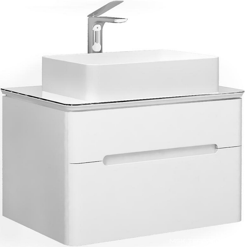 Тумба Jorno Bosko Тумба под раковину подвесная с 2 выдвиж ящиками, столешница стекл., 75х50хh46,5см, без раковины, (цв.белый), Bosko ZZ