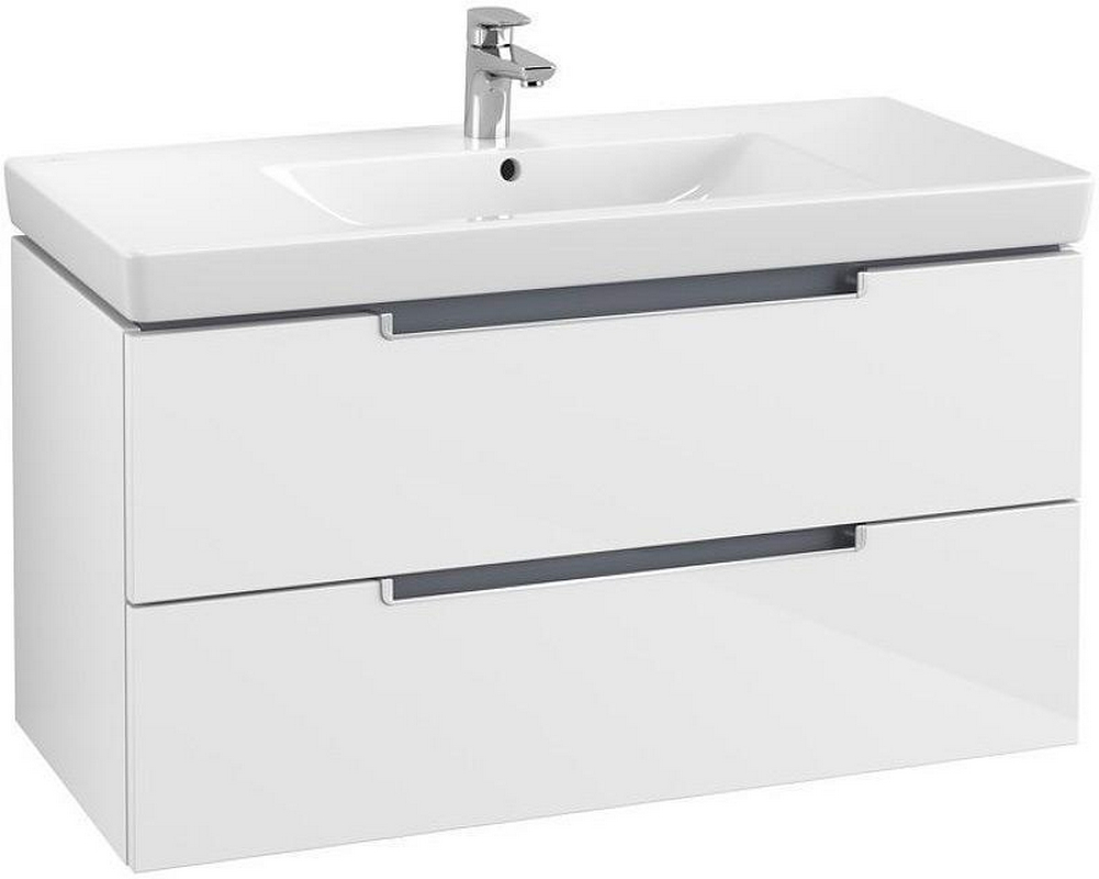 Тумба Villeroy & Boch Subway 2.0 Тумба 987х420х449 мм, д/раковины, (2 выдв.отдела, контейнеры д/аксесс.), креп.в комп.,(цв. DH Glossy White/ ручка хром глянц.), Subway 2.0 ZZ