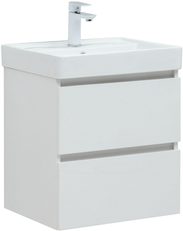 Тумба подвесная под раковину Бруклин 60 белый, 495х436 мм, БЕЗ раковины Sanovit (198206), 2 выдвижный ящика, цв. белый