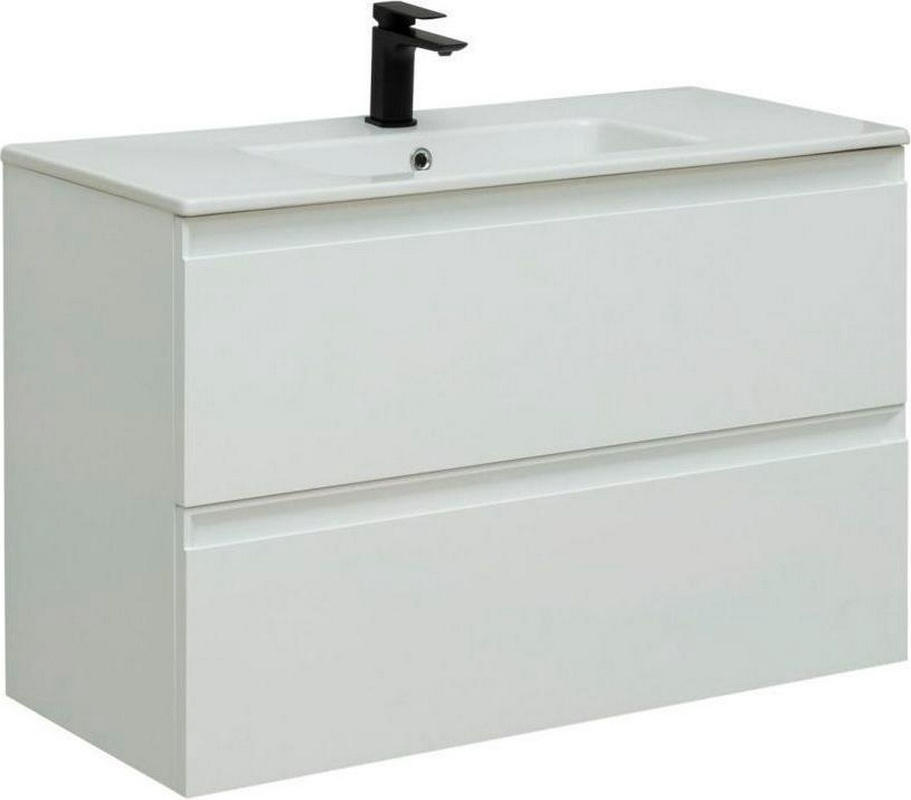 Тумба напольная/подвесная "Бостон" - 100 см, цвет белый, 2 выдвижн. ящика, БЕЗ раковины и комплекта ножек