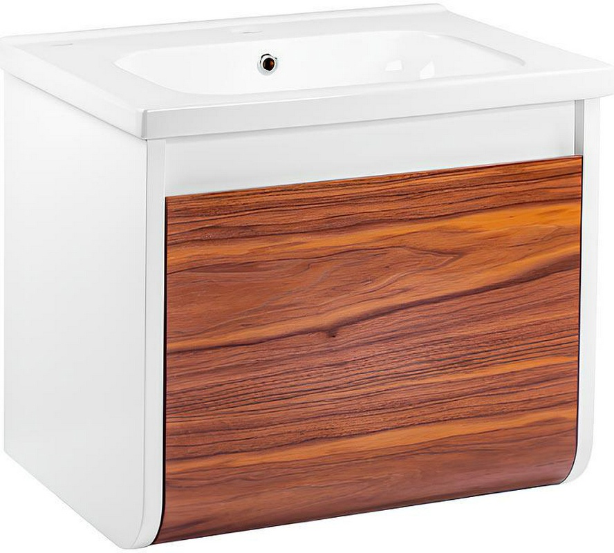 Тумба Pestan Vision К-т мебели д/в: Тумба подвесная, 1 ящик, 600х448хh537мм, с раковиной арт.id060, и пеналом арт.VSN000P-R, (цв.орех/белый), Vision ZZ