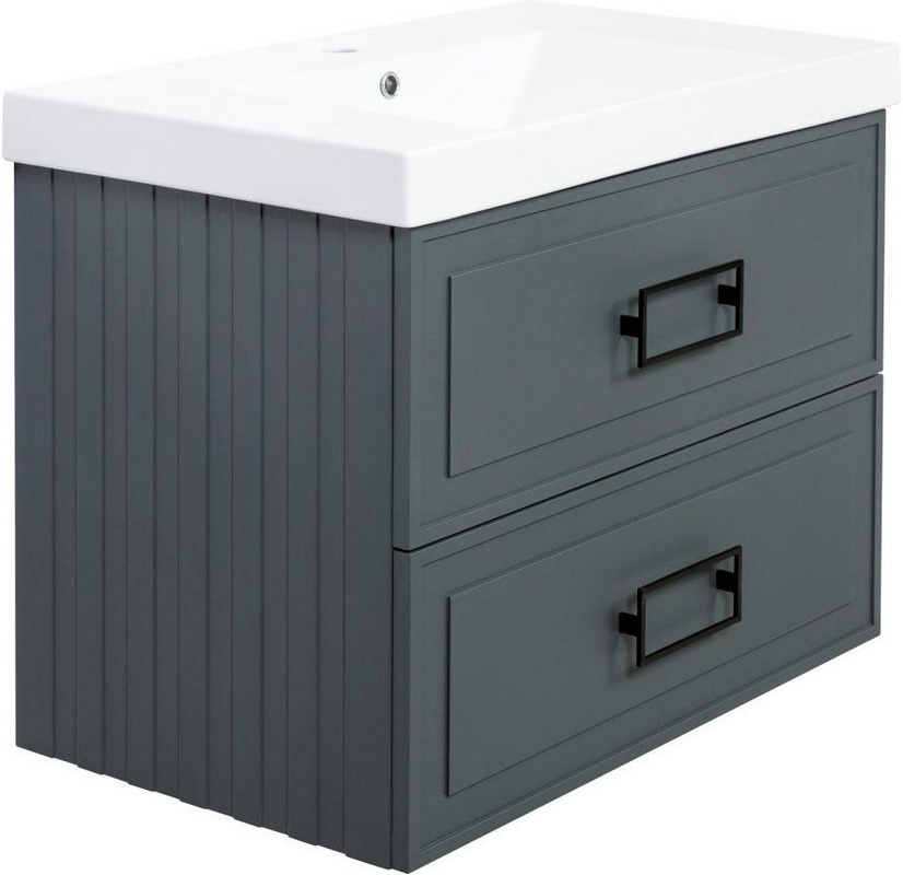 Тумба под раковину Gem, подвесная, 60 см, 2 ящика push-to-open, цвет графит матовый