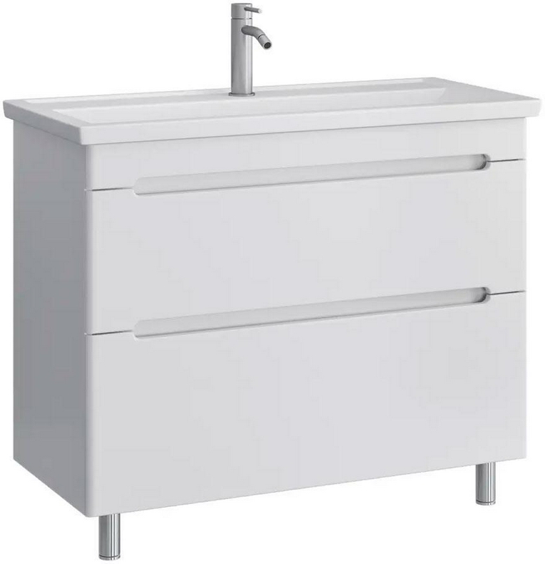 Тумба напольная/подвесная "Бостон" - 100 см, цвет белый, 2 выдвижн. ящика, БЕЗ раковины и комплекта ножек