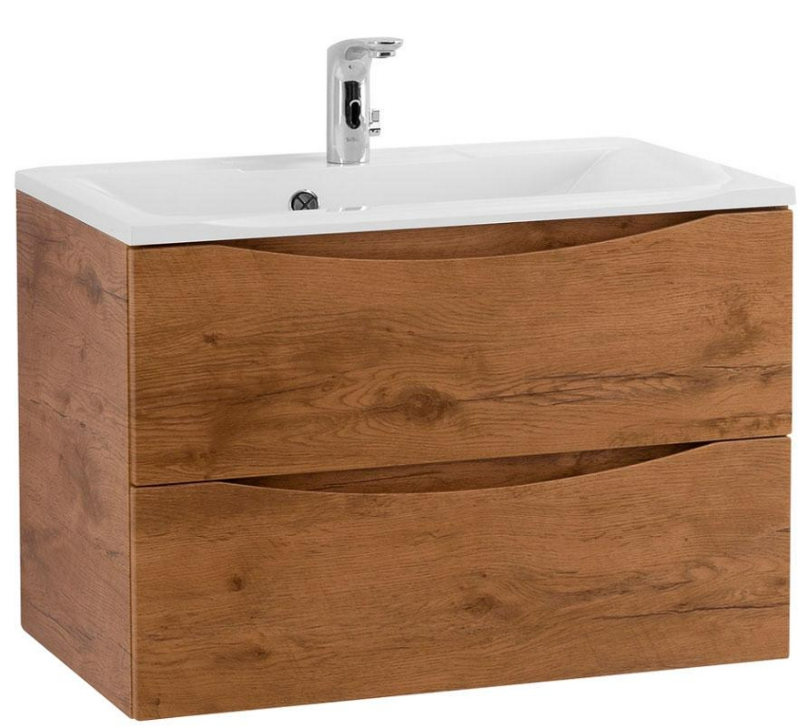 Тумба подвесная "Nova Lite" 75 см, цвет дуб рошелье, 2 выдвижн. ящик, БЕЗ раковины "Латина" ZZ