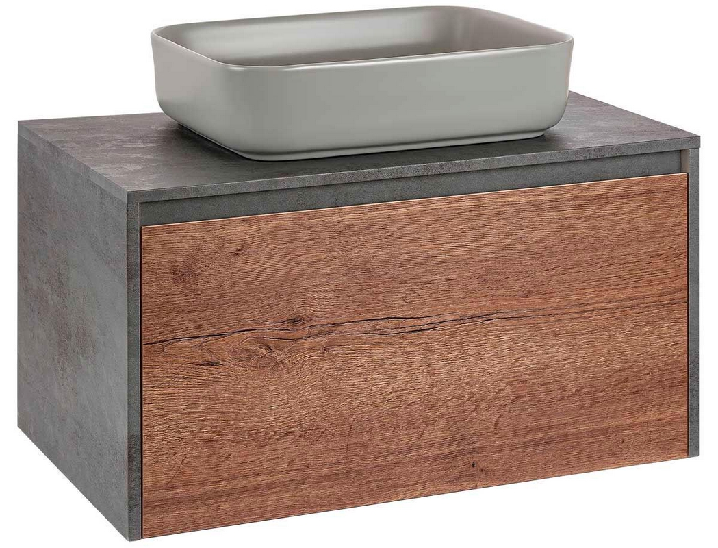 База под накладн.раковину подвесная, 1 выкатной ящик, 1 скрытый ящик, 800x500xh450мм, без раковины, (цв.T.Oak + Beton), ZZ Vincea Mesa VMC-2MS800TB