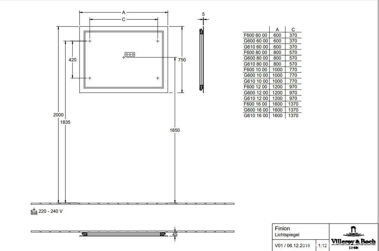 Зеркало 1200хh750х45мм, с LED подсветкой, БЕЗ пульта ДУ арт.G9990200, (крепёж в компл.), ZZ Villeroy & Boch Finion G6001200