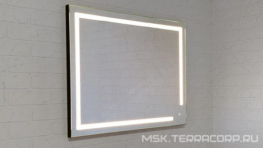 Зеркало, зеркало шкаф КЗСК 405 Зеркало 60х80 см, универсальный монтаж, LED подсветка с сенсорным выключателем, черный алюминиевый профиль