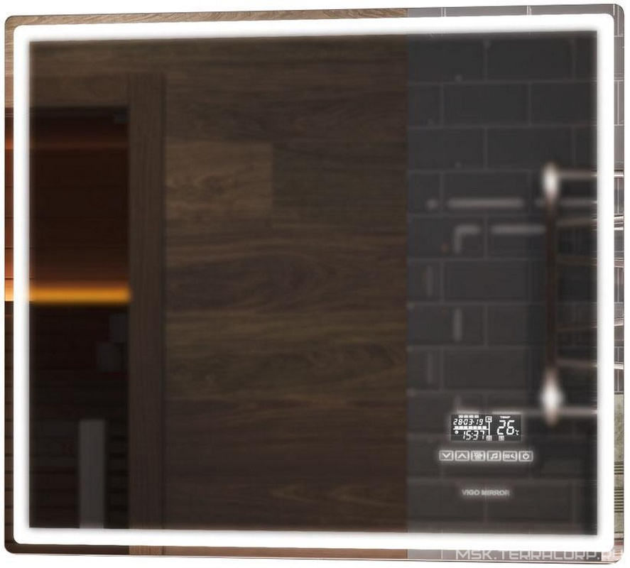 Зеркало, зеркало шкаф Vigo Media Зеркало Geometry Media 800, 80х70 см, сенсор, подсветка, часы,антизапотевае, муз.блок, ZZ