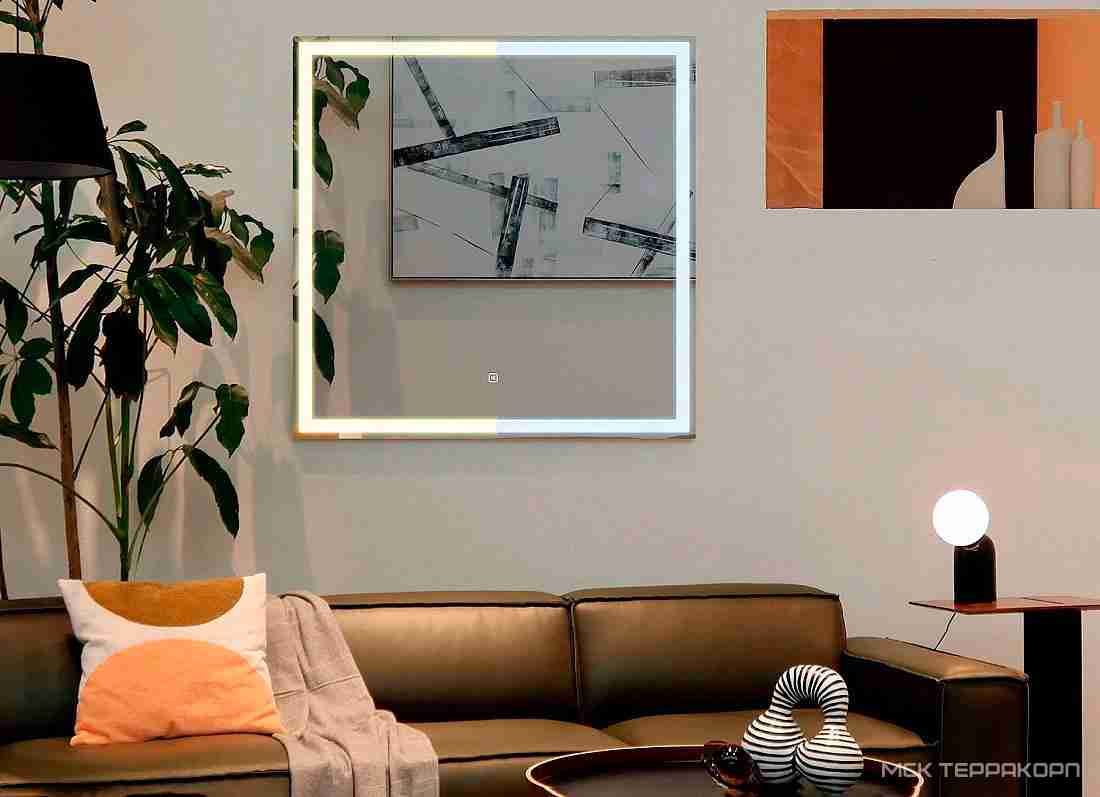 Зеркало, зеркало шкаф Silver Mirrors Рига Зеркало 770*770 мм, LED подстветка, теплый/холодный свет, сенсорный выключатель