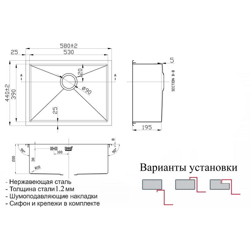 Мойка кухонная встраиваемая cнизу Zorg inox rx Мойка кухонная Zorg Inox RX RX-5844| 44x58x20