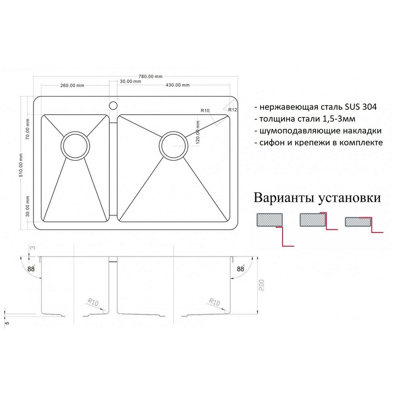 Мойка кухонная встраиваемая cнизу Zorg inox r Мойка кухонная Zorg Inox R 78-2-51 R| 51x78x20