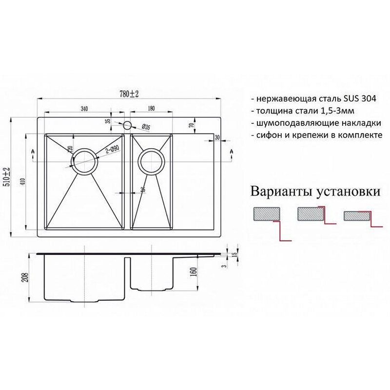 Мойка кухонная встраиваемая cнизу Zorg inox pvd Мойка кухонная Zorg Inox PVD SZR 5178-2-L bronze| 51x78x20
