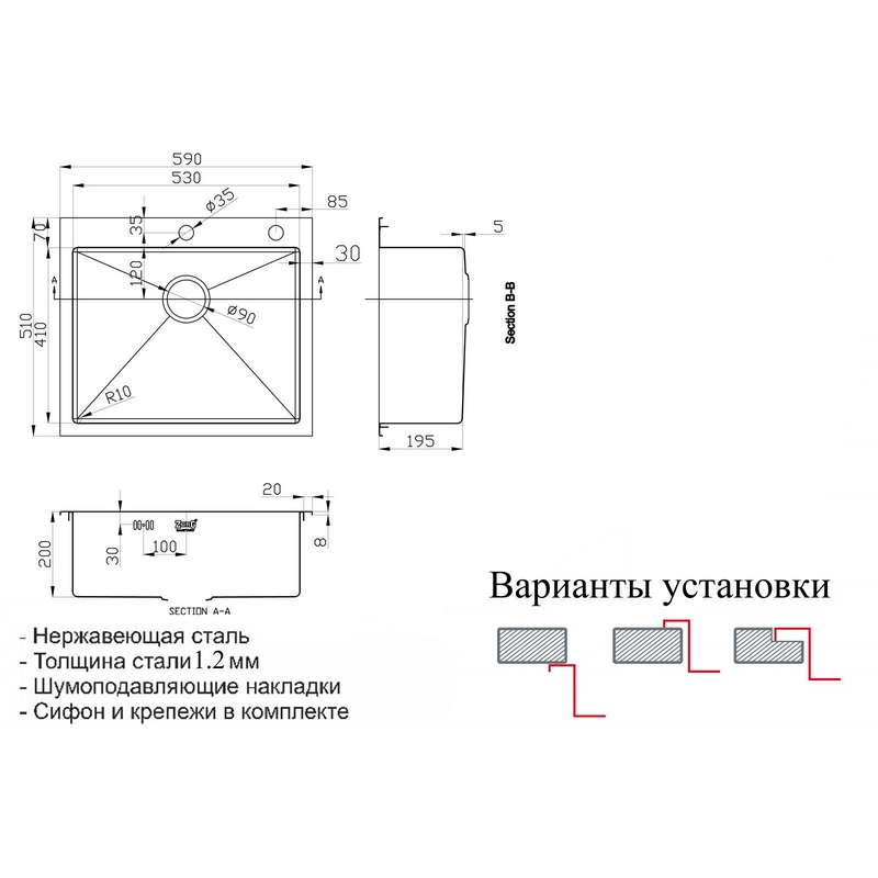 Мойка кухонная встраиваемая cнизу Zorg inox rx Мойка кухонная Zorg Inox RX RX-5951| 51x59x20