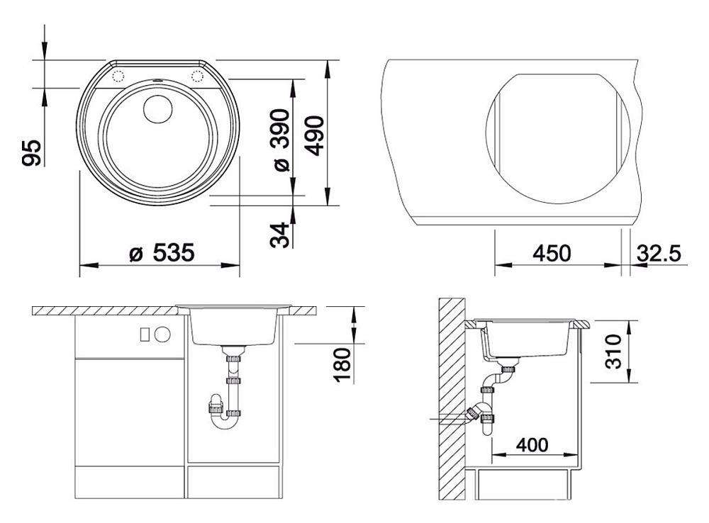 Мойка кухонная встраиваемая сверху Blanco rondoval Мойка кухонная Blanco Rondoval 45 серый беж| 49x53x18