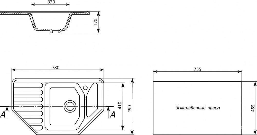 Мойка кухонная встраиваемая сверху Ulgran u-109 Мойка кухонная Ulgran U-109-310 серая| 49x78x17