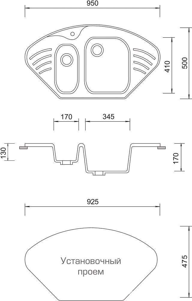 Мойка кухонная встраиваемая сверху AquaGranitEx m-14 Мойка кухонная AquaGranitEx M-14 серая| 50x95x17