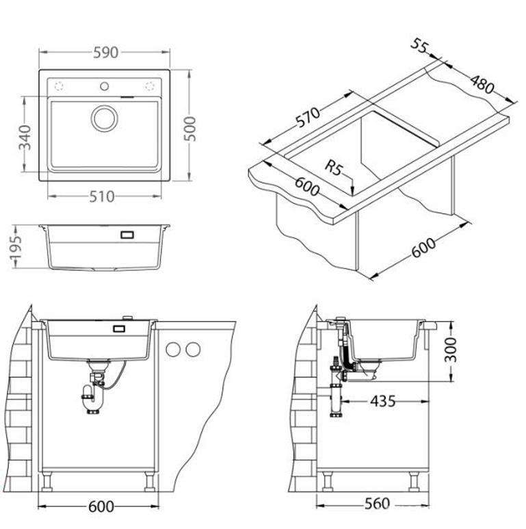 Мойка кухонная встраиваемая сверху Alveus Atrox granital Мойка кухонная Alveus Atrox Granital 30 arctic| 50x59x19
