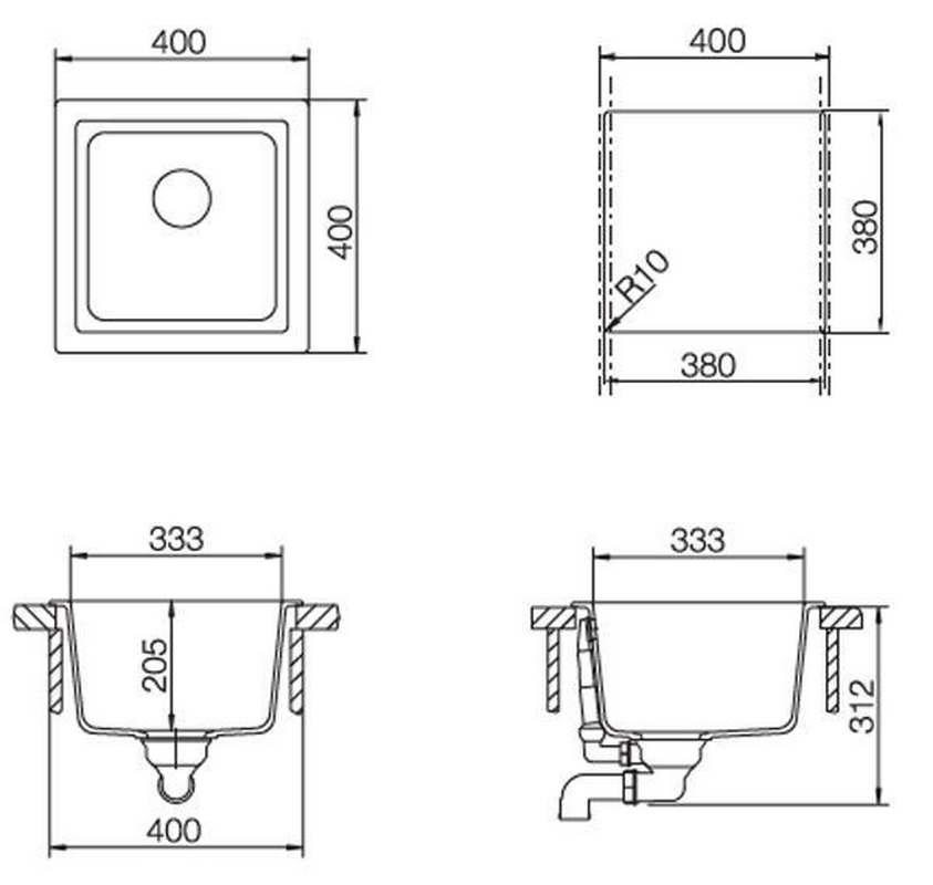 Мойка кухонная встраиваемая сверху Schock euro Мойка кухонная Schock Euro 40 (N-100) оникс| 40x40x20