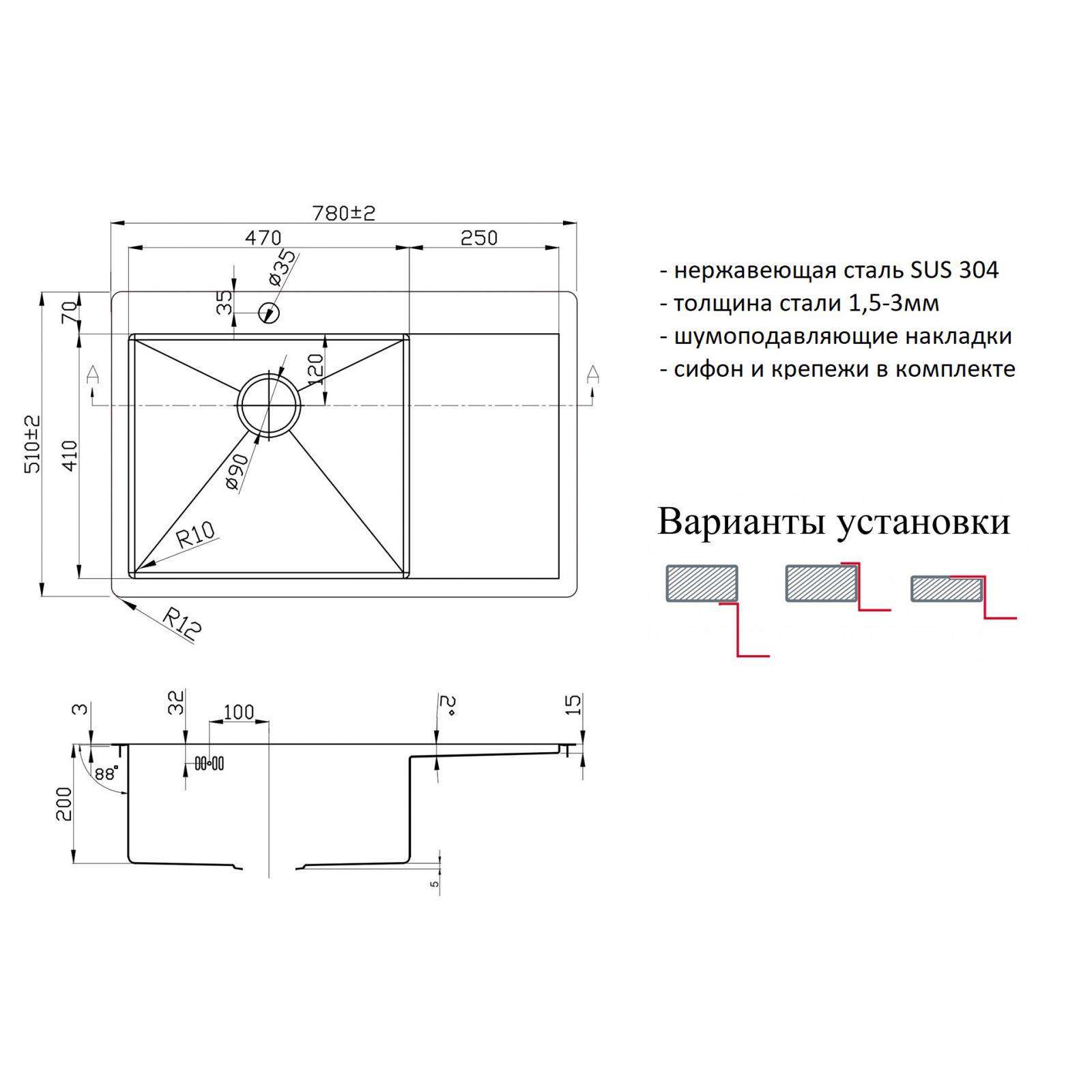 Мойка кухонная встраиваемая сверху Zorg inox r Мойка кухонная Zorg Inox R 7851 L| 51x78x20