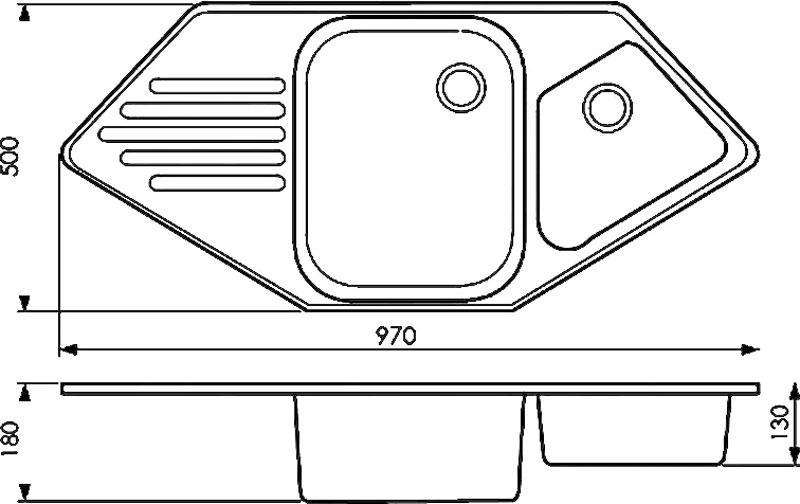 Мойка кухонная встраиваемая сверху Whinstone андора Мойка кухонная Whinstone Андора черный металлик| 50x97x18