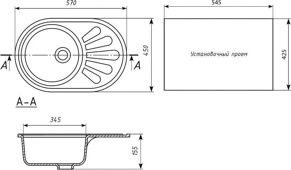 Мойка кухонная встраиваемая сверху Ulgran u-107м Мойка кухонная Ulgran U-107м-342 гранитовая| 45x57x15