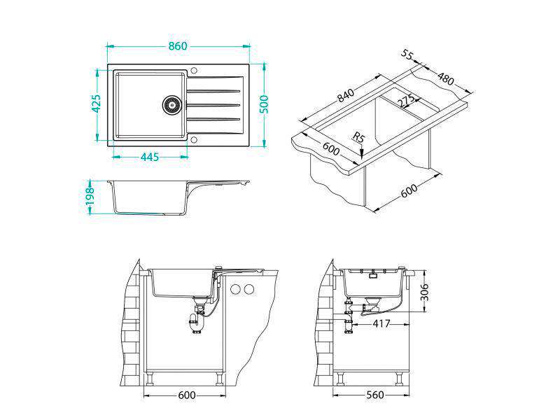 Мойка кухонная встраиваемая сверху Alveus cadit granita Мойка кухонная Alveus Cadit Granital 40 arctic| 50x86x20